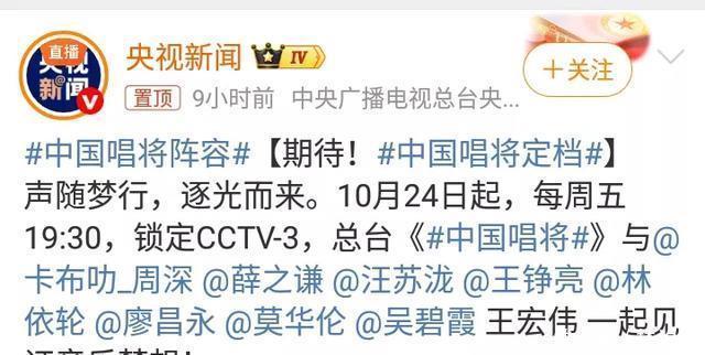 两大身份的赋予,进一步提升了歌手周深的境界!还应该看到的是,在《中国唱将》节目中,除了歌手周深参与之外,还有薛之谦、汪苏泷、王铮亮、林依轮、廖昌永、莫华伦、吴碧霞、王宏伟。央视新闻媒体,在社交平台发文,一句“一起见证音乐梦想”,点明了歌手参与《中国唱将》的意义所在! 在一个美好的时代,一个富强的祖国之下,每一位歌手,都可以为了奔赴梦想,去去舞台展现自己的实力!歌手周深就是这样的优秀艺人。从省级卫视的综艺节目,到央视的全国性舞台,周深引人关注! 此外,0713男团艺人王铮亮,也参与《中国唱将》节目,带来再就业男团的精神与力量!所以,越是优秀艺人,越能够获得更多机会,从而实现自己的舞台梦想,完成一次又一次的自我突破! 在临近岁末的时候,歌手周深传来越来越多的好消息!这是一位90后艺人不断成长,厚积薄发的结果!要知道,没有谁能够随随便便成功!因为,成功不是偶然的!歌手周深成功,其实是一种必然!这样的必然,是实力与机会的把握!歌手周深每一次登上舞台,都是微微一笑。 这是歌手的境界,用微笑来回馈观众。微笑的力量,才是歌手周深正能量的一种体现!在这美好的十月份,周深参与的两档综艺节目即将播出!于是,追星的观众,又可以看到周深唱歌的画面。这才是一个打动人心的结果! 周深悦耳动听的歌声,在不同节目的舞台上响起,成为越来越多观众温暖人心的力量!期待歌手周深的发展越来越好!因为优秀人士值得!祝福周深!